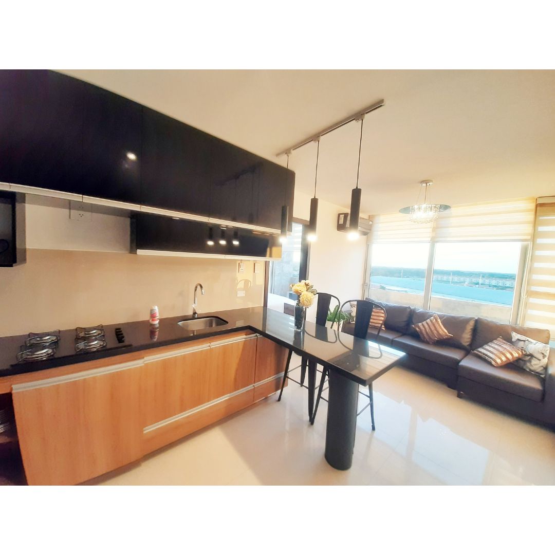 ✅ Cocina estilo americana con mueblería alta y baja de la mejor calidad, cocina encimera a gas domiciliario, desayunador.