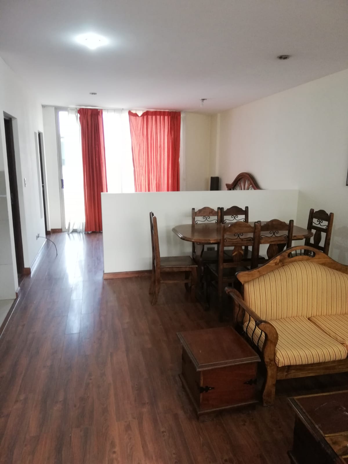 Incluye: Juego de living y comedor, cocina encimera empotrada, refrigerador, juego de dormitorio, lavadora, cortinas, calefón.