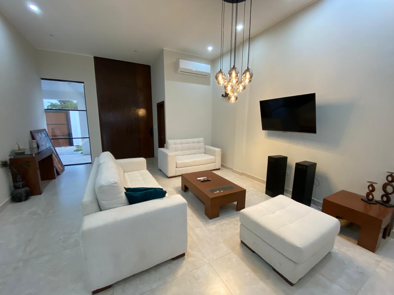 La casa cuenta con a/acondicionados en todos los ambientes. Cocina con muebles altos y bajos,