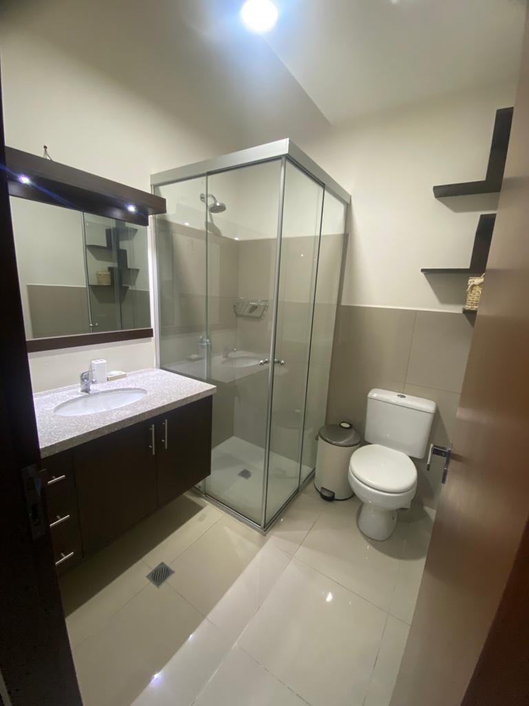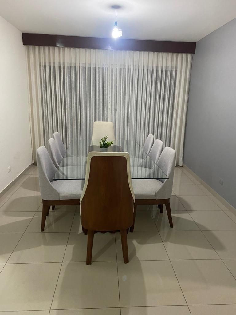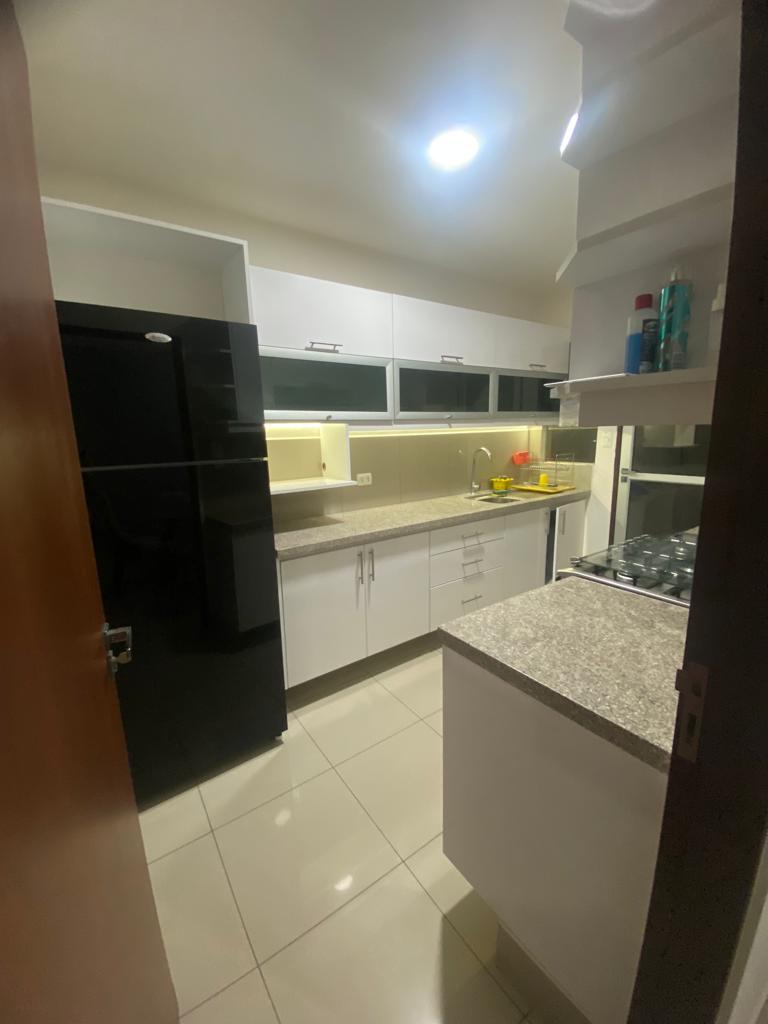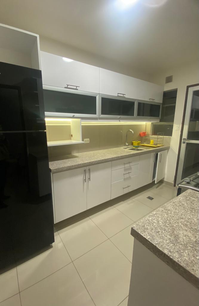 Todo los ambientes cuentan con aire acondicionado, los dormitorios con cortinas, ropero empotrado, sala de estar con mueble para Tv , cocina amplia con mobiliario alto y bajo, los baños con box de ducha , mobiliario bajo y espejos , area de lavanderia techada.