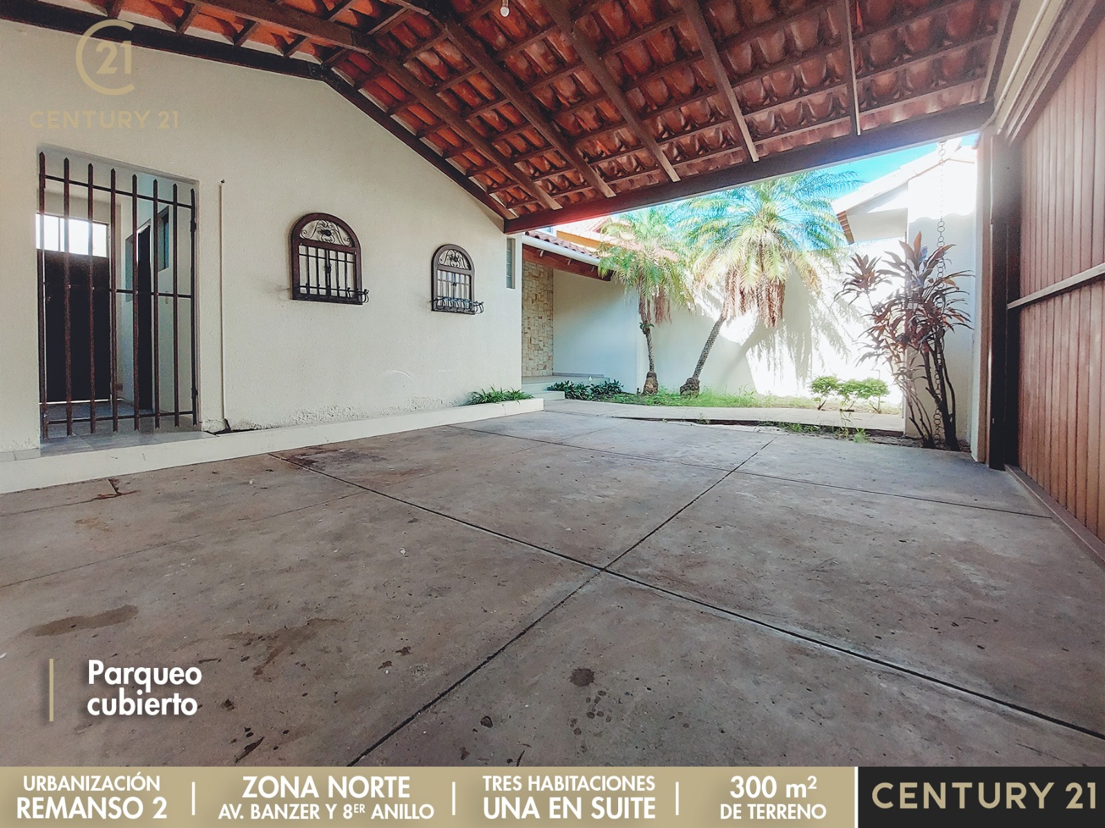 Garaje para 2 vehículos techado, portón eléctrico