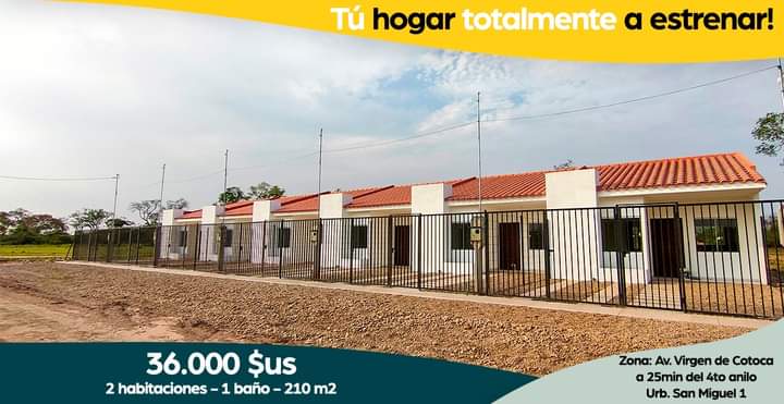 Ahora puedes tener tu casa propia en la urbanización SAN MIGUEL a 20 minutos del 4to anillo Virgen de Cotoca km 14.5 ingresando por Fridosa