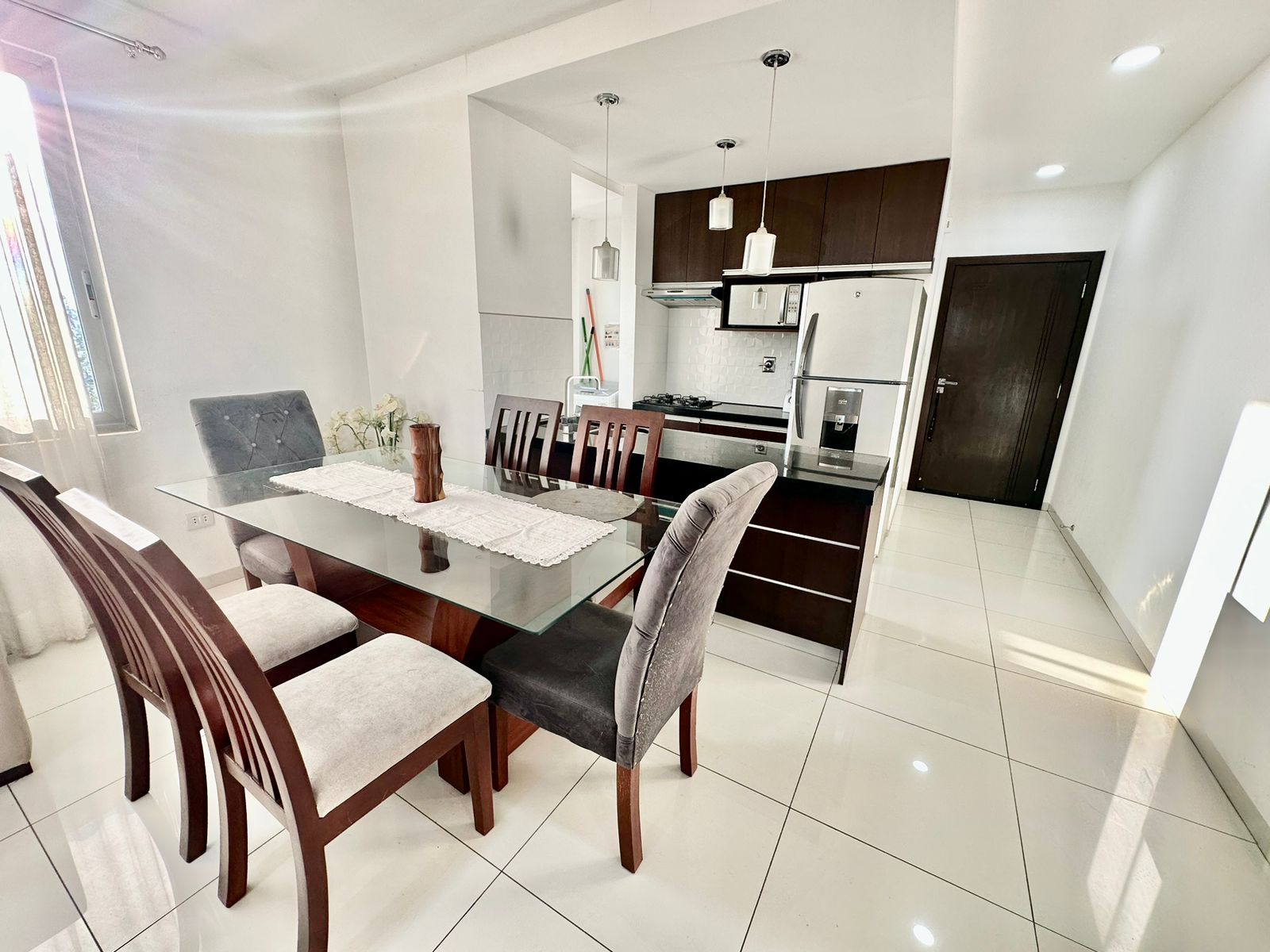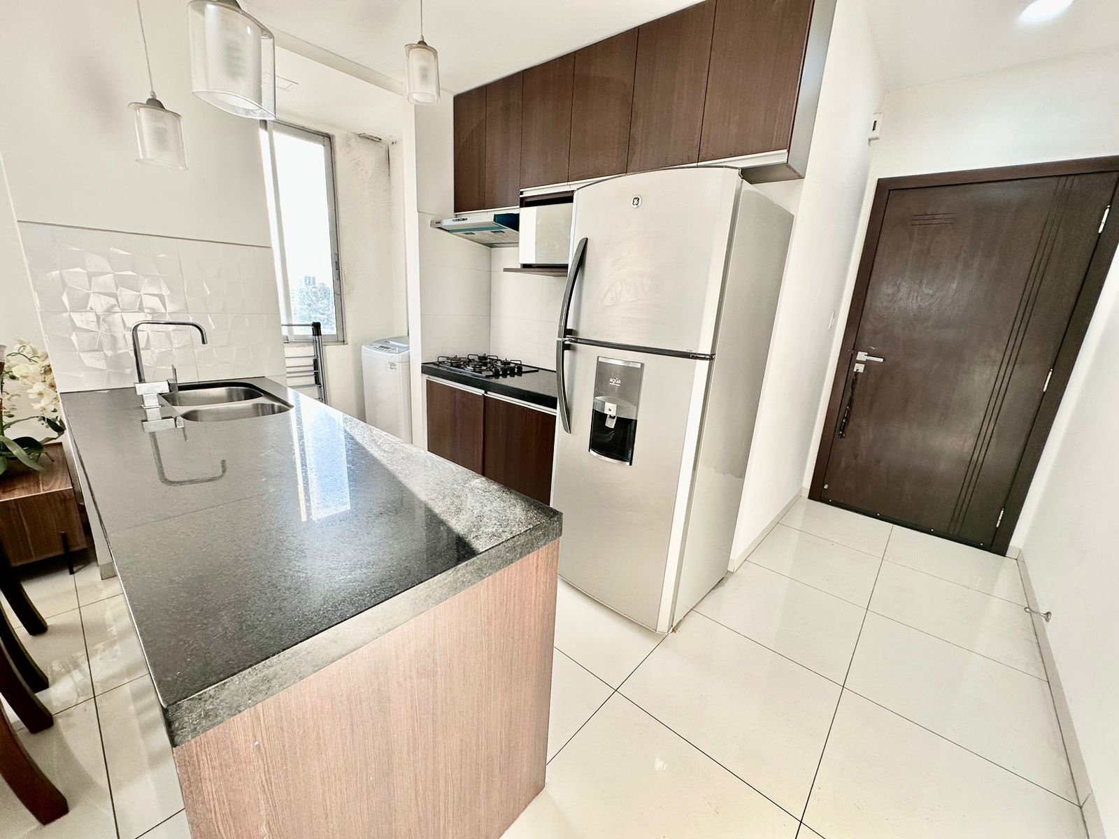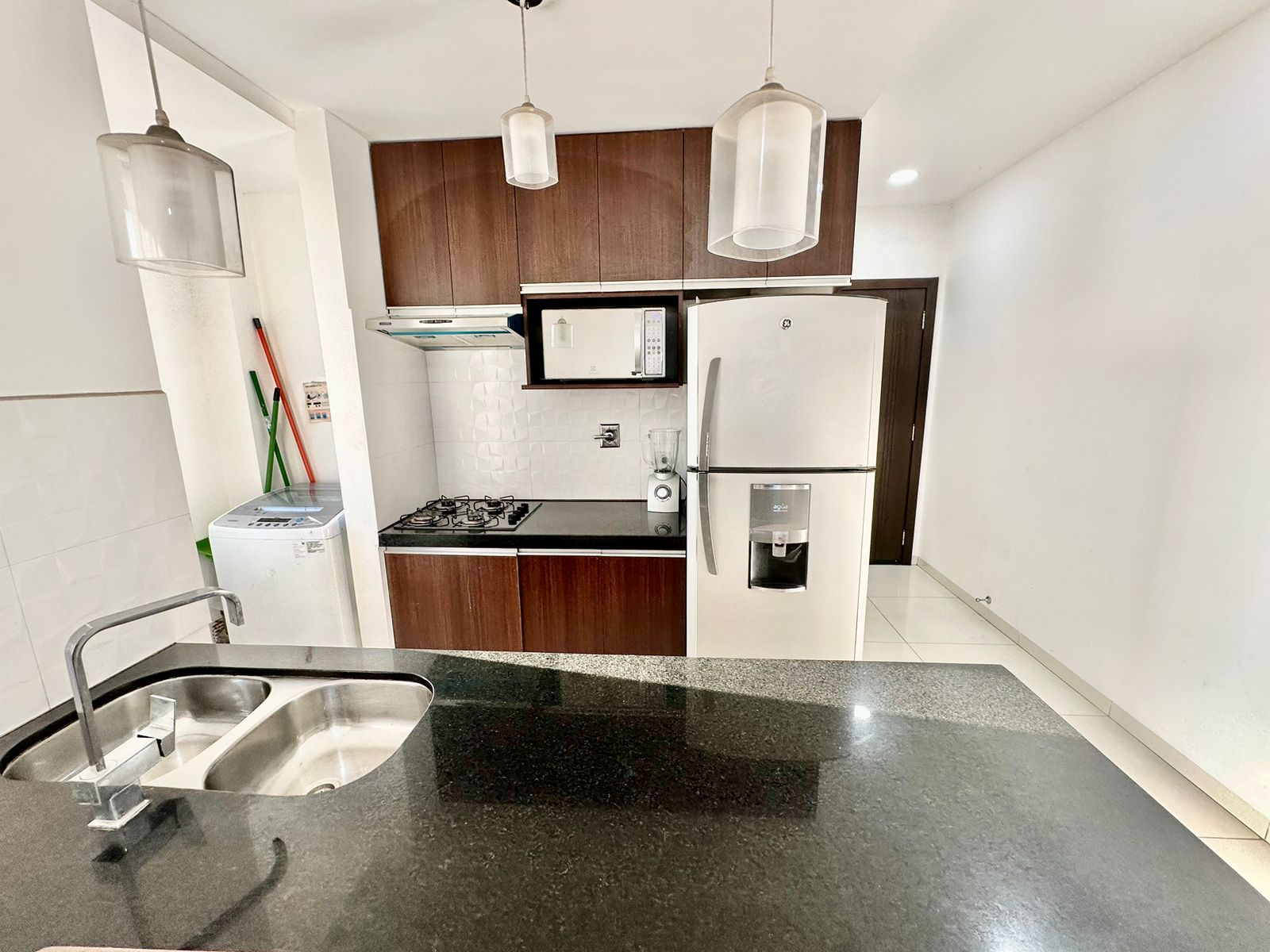 ????Cocina integrada con mesón desayunador de granito