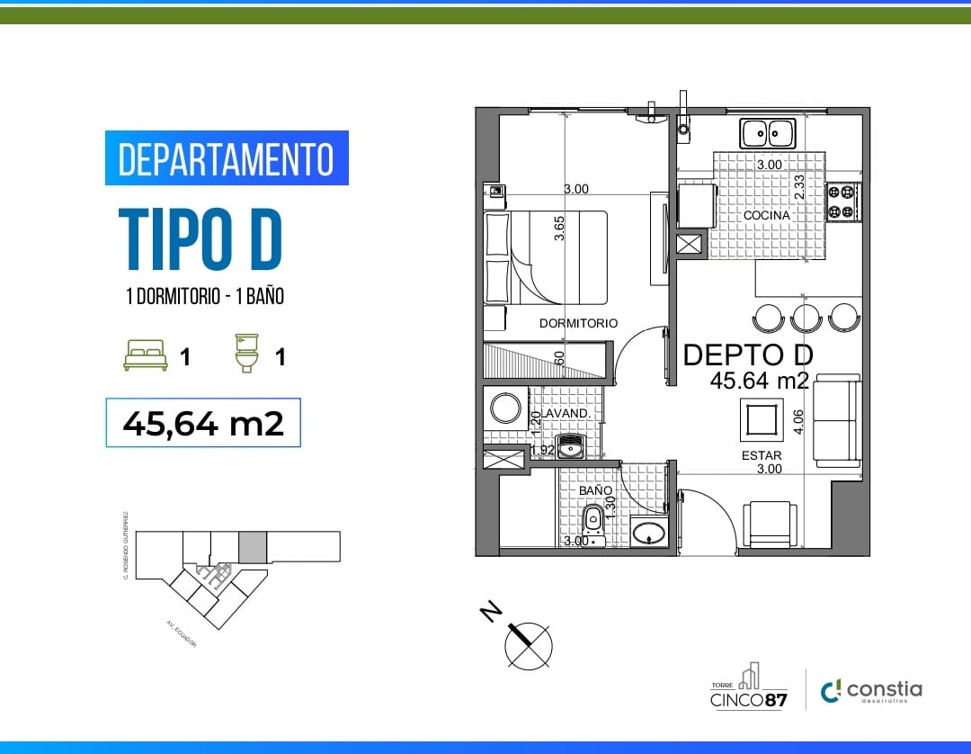 Con un diseño moderno y funcional, ubicado en un edificio nuevo en plena esquina. Disfruta de acabados de alta calidad, vistas espectaculares y una ubicación inmejorable.
