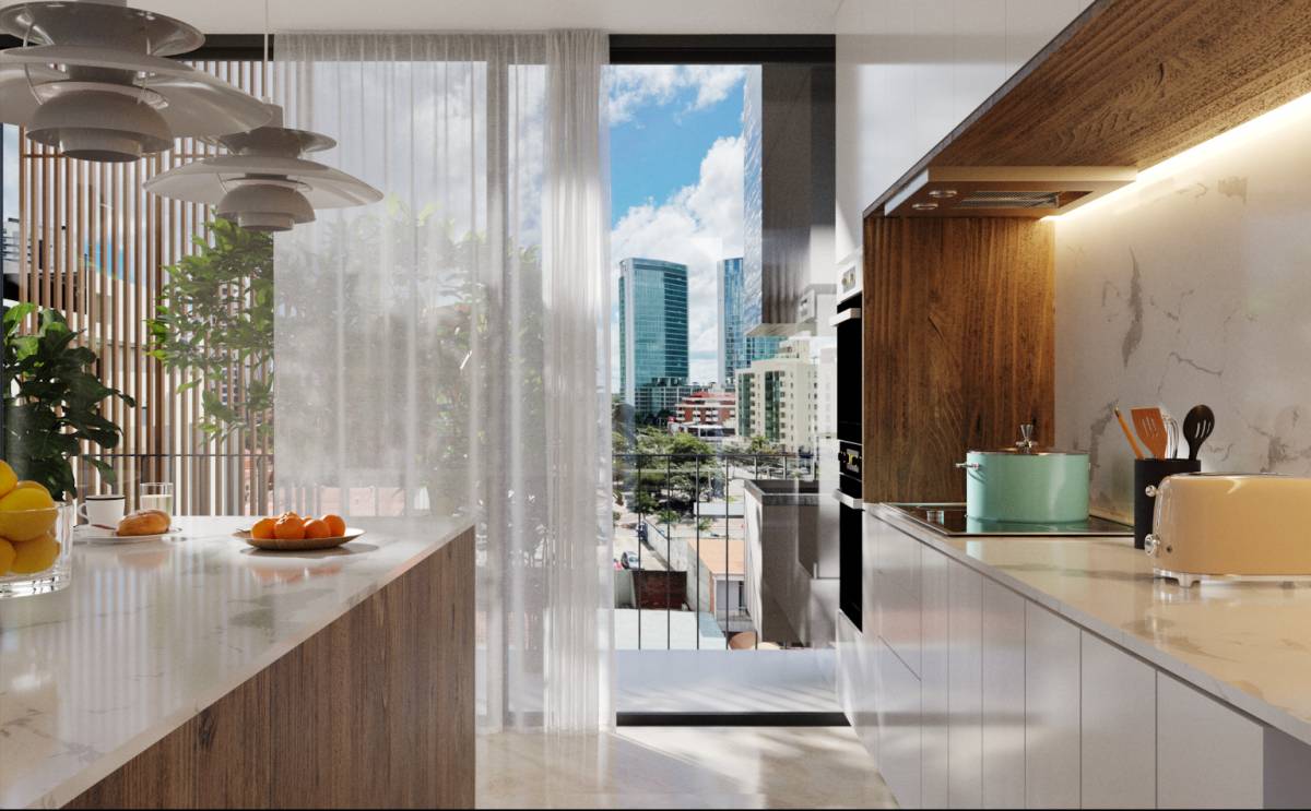 Cada residencia cuenta con acceso directo desde el ascensor, seguridad biométrica y un diseño que integra los espacios sociales con la cocina para crear ambientes amplios, modernos y funcionales. Los departamentos incluyen tres dormitorios en suite, baño de visitas y balcones con vistas abiertas. Se entregan completamente equipados con mobiliario de alta gama, línea blanca de lujo, aires acondicionados en todos los ambientes, sistema de domótica, churrasquera en balcón y mucho mas.