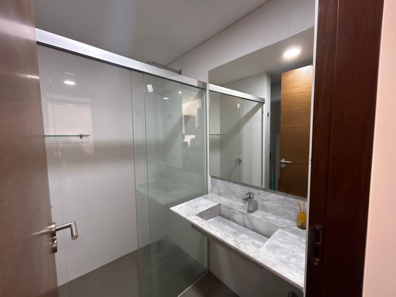 •Baño con mueblería y box de ducha