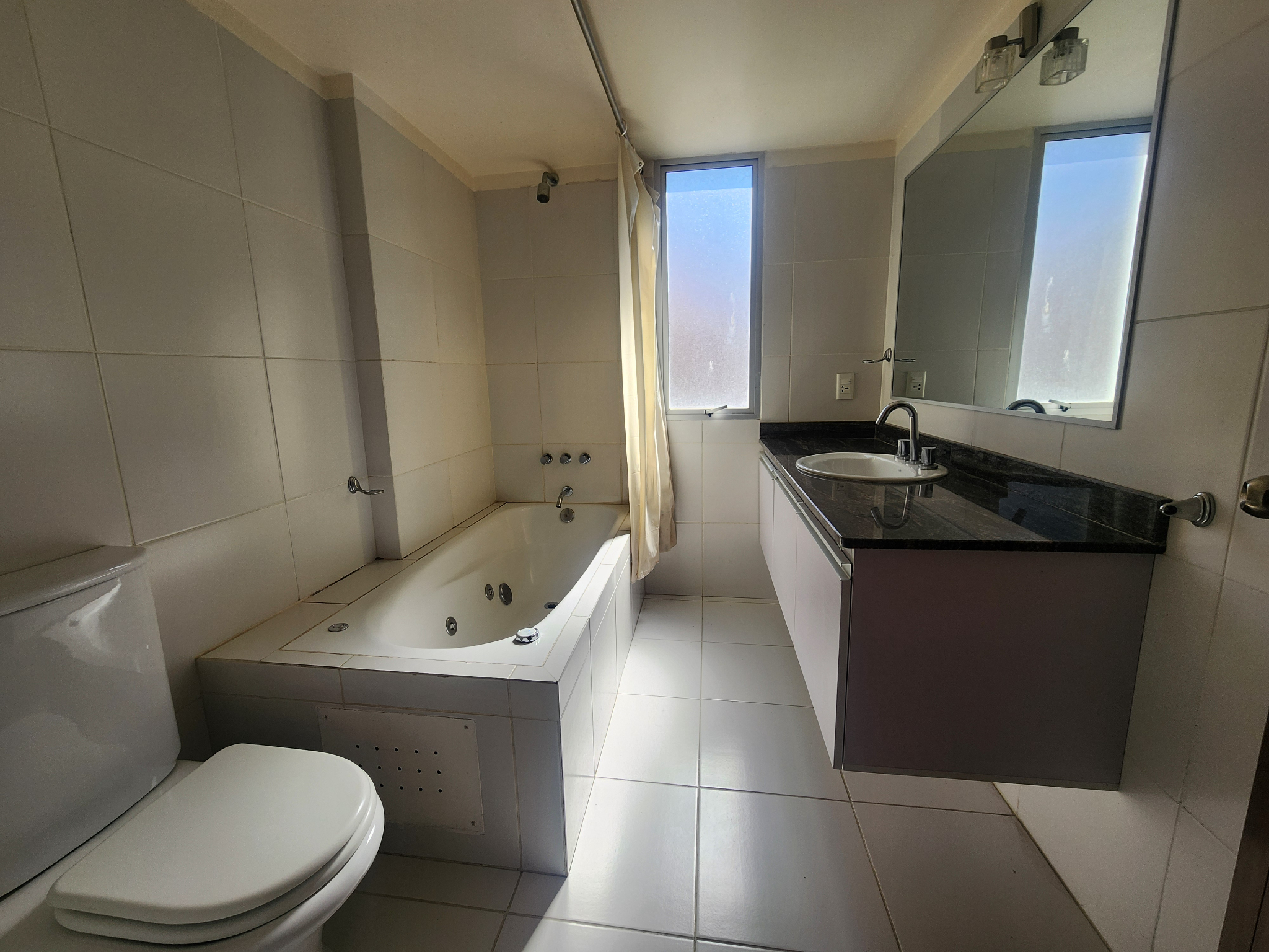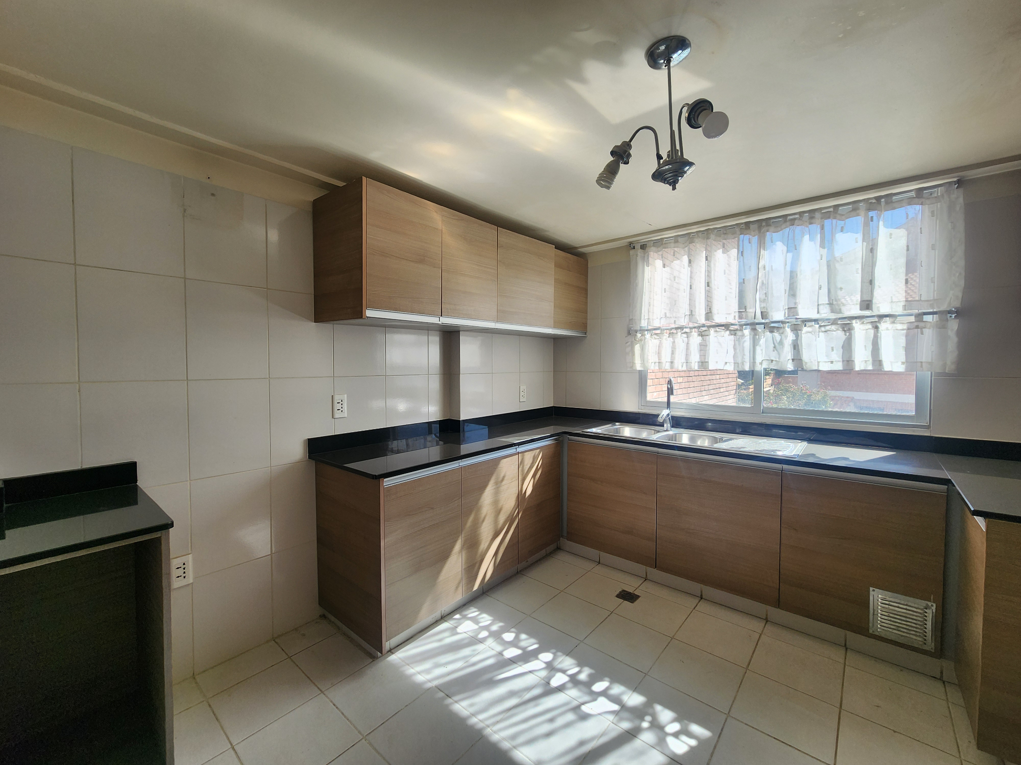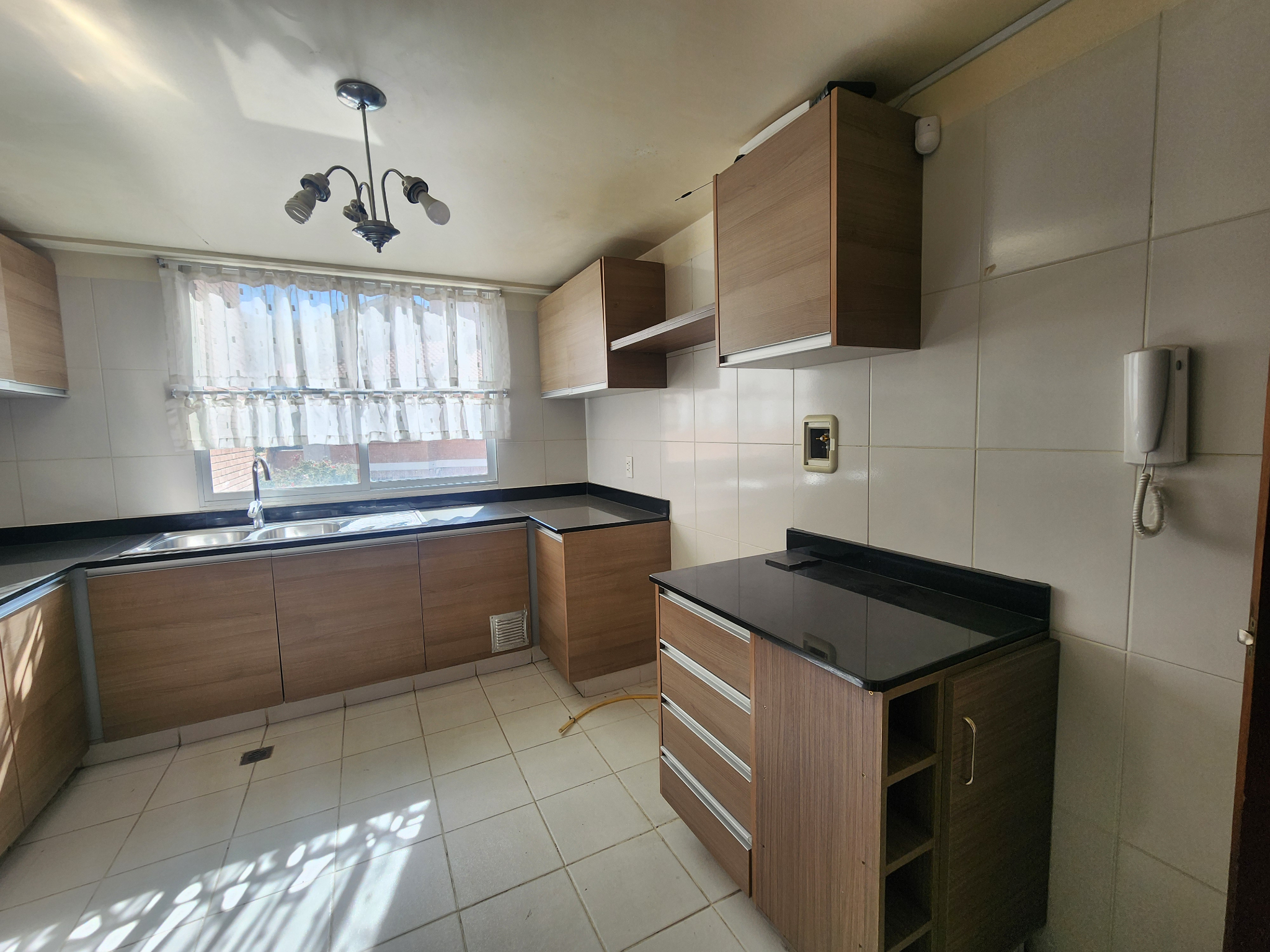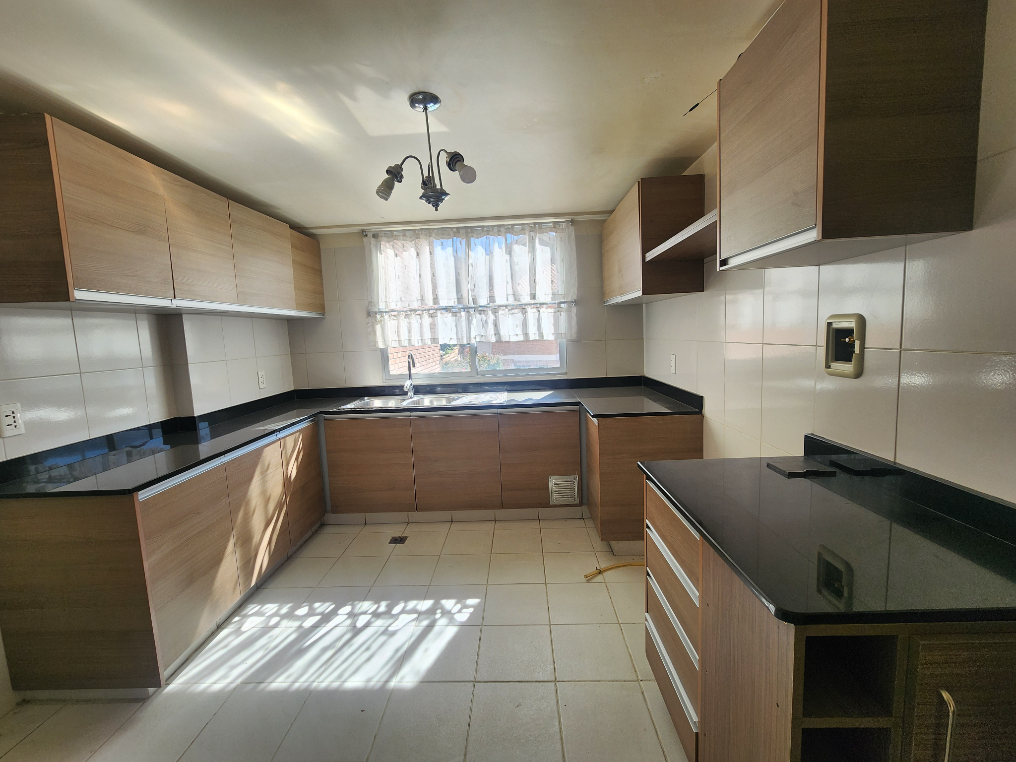 • Cocina cerrada con mesones de granito, cajonería alta y baja, cuenta con conexión a gas domiciliario.