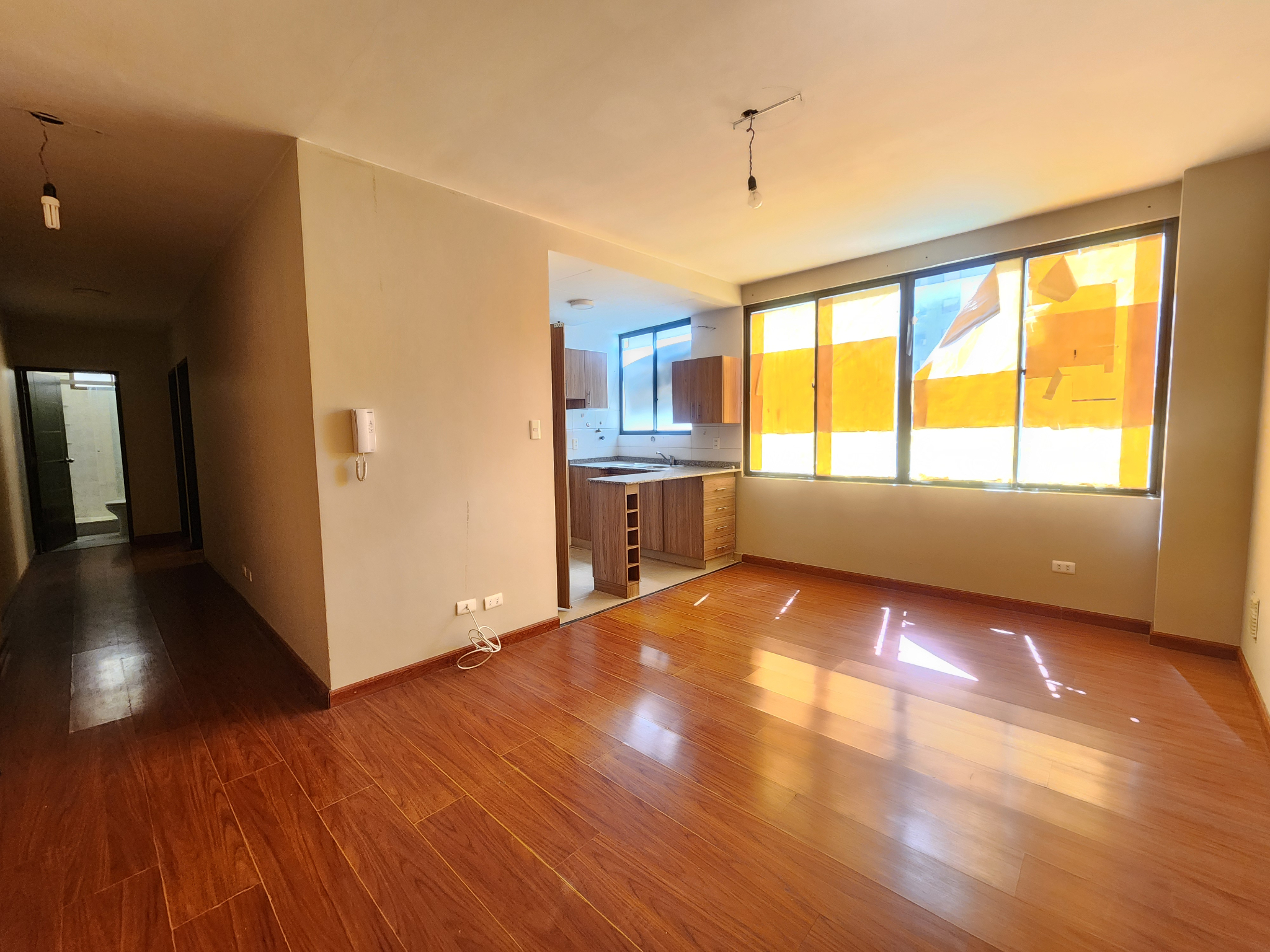 • Living comedor con pisos de madera.