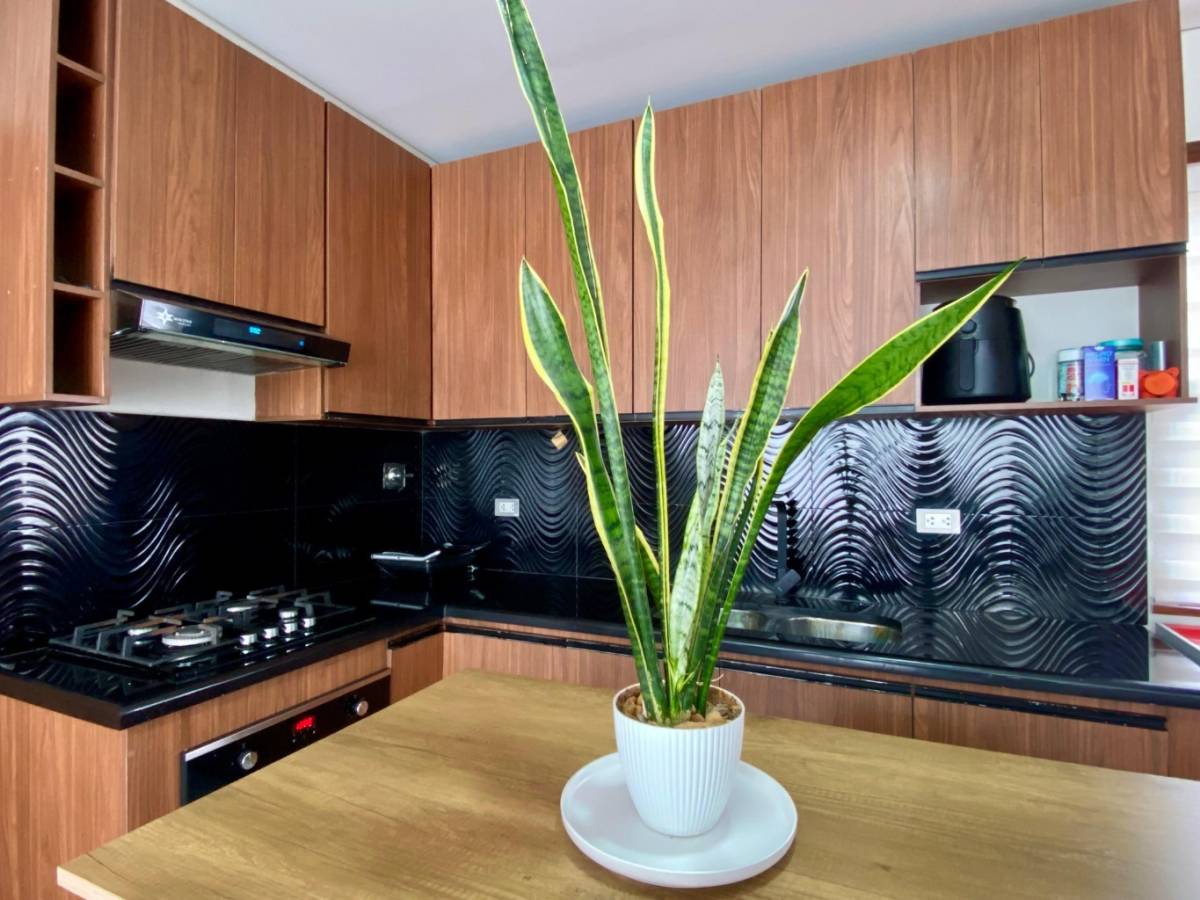 • Cocina equipada con cajonería, mesón de granito y electrodomésticos