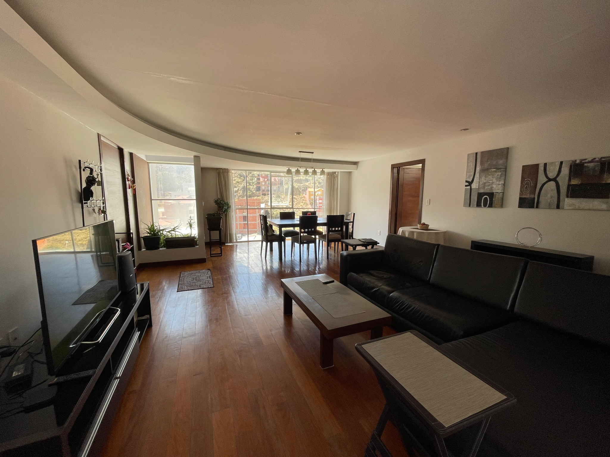 -Living Comedor iluminado con ventanas de piso a techo