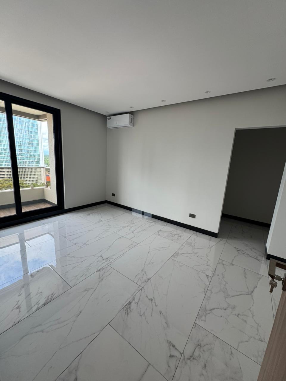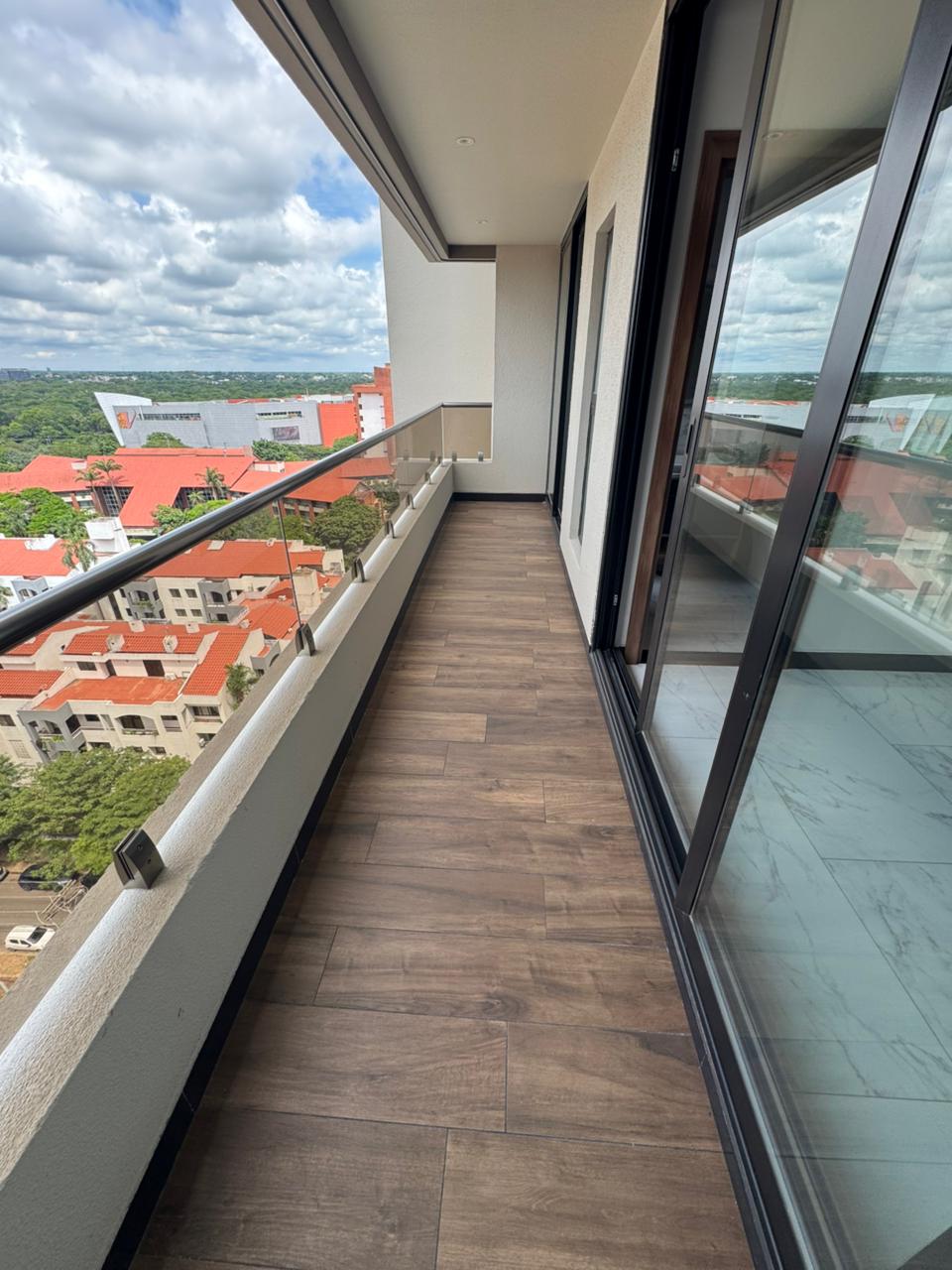 Balcón amplio con puerta de aislamiento acústico