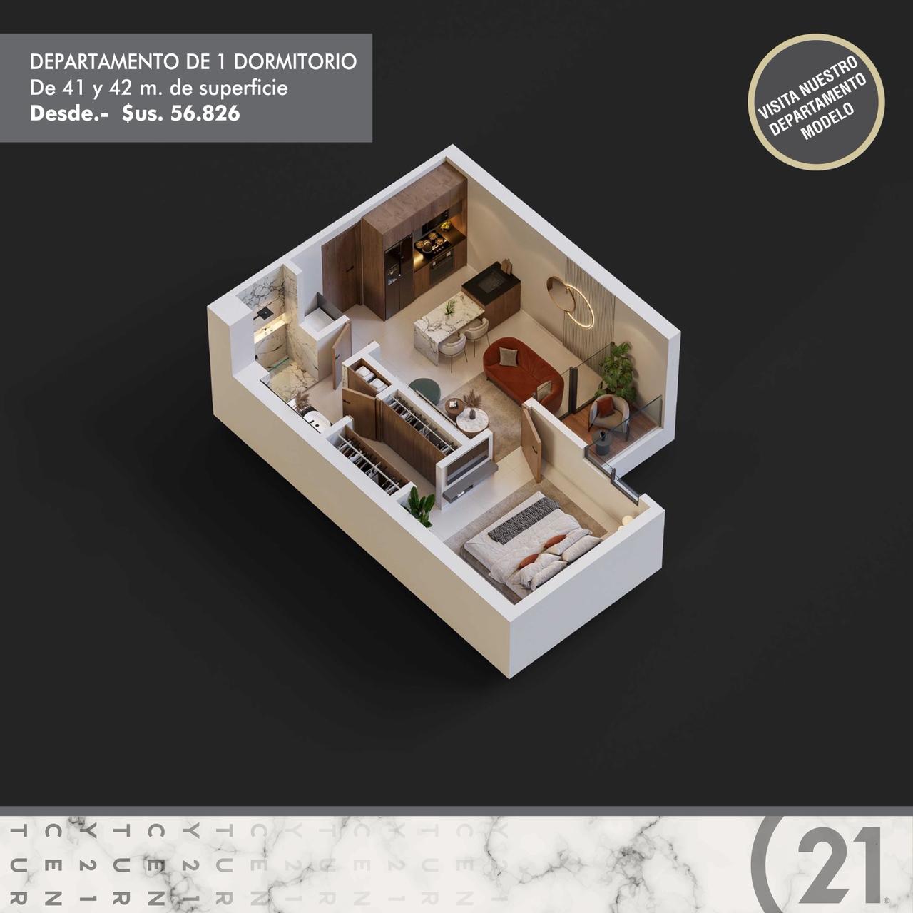 Unidades de 1 dormitorio desde 41 m² y 56.826 USD.