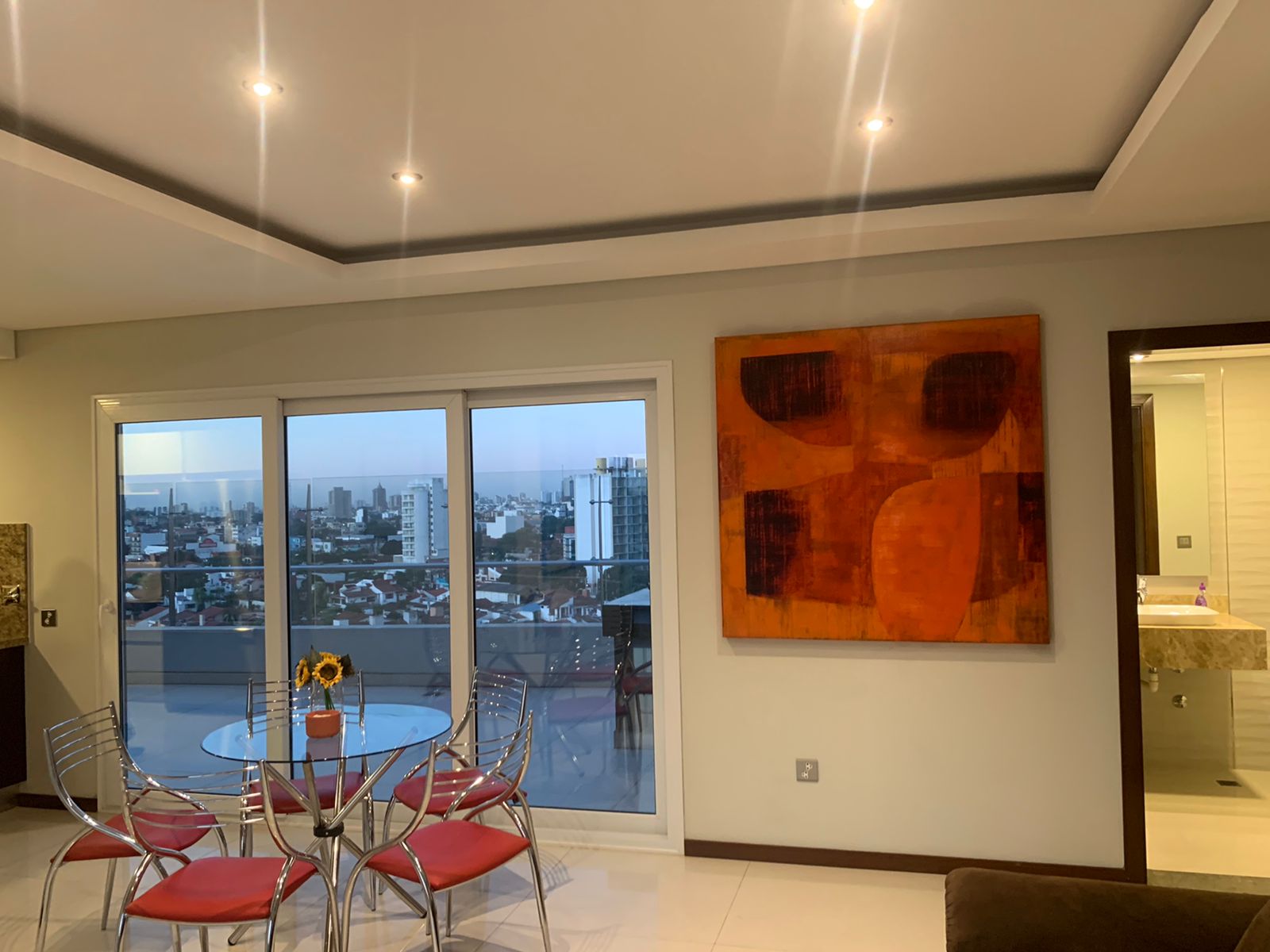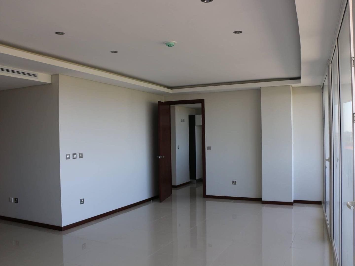 Carpintería de Ventanas y puertas exteriores de PVC con doble vidrio hermético (DVH), vidrio exterior laminado, de seguridad, y factor de control solar. Marca TECNOSUISSE. Permite un mejor aislamiento acústico y menor ingreso de calor por radiación solar.✅