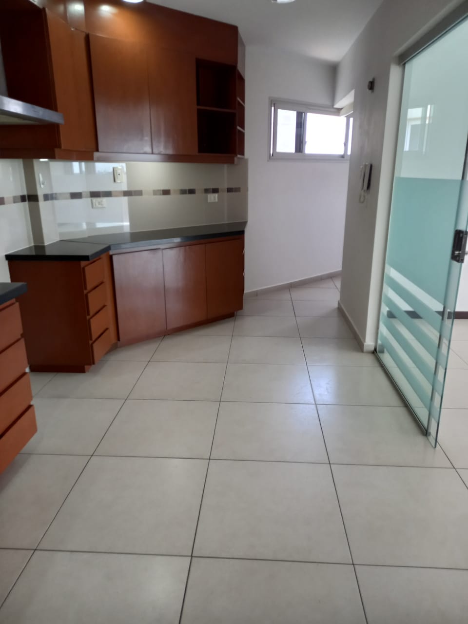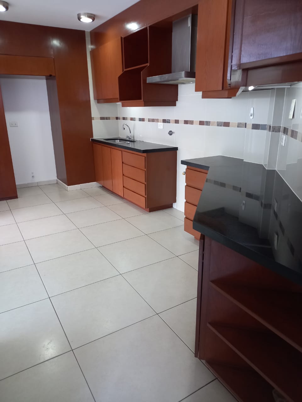 Amplio Living Comedor con excelente vista al 3er anillo y a la piscina;Cocina independiente con cajonería alta y baja, cuenta con mueble de despensa y extractor de aire.