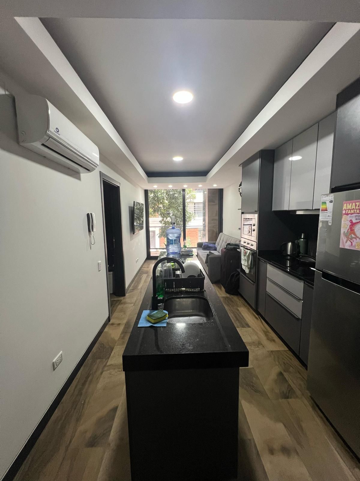 ▪ Cocina americana con muebles altos y bajos.