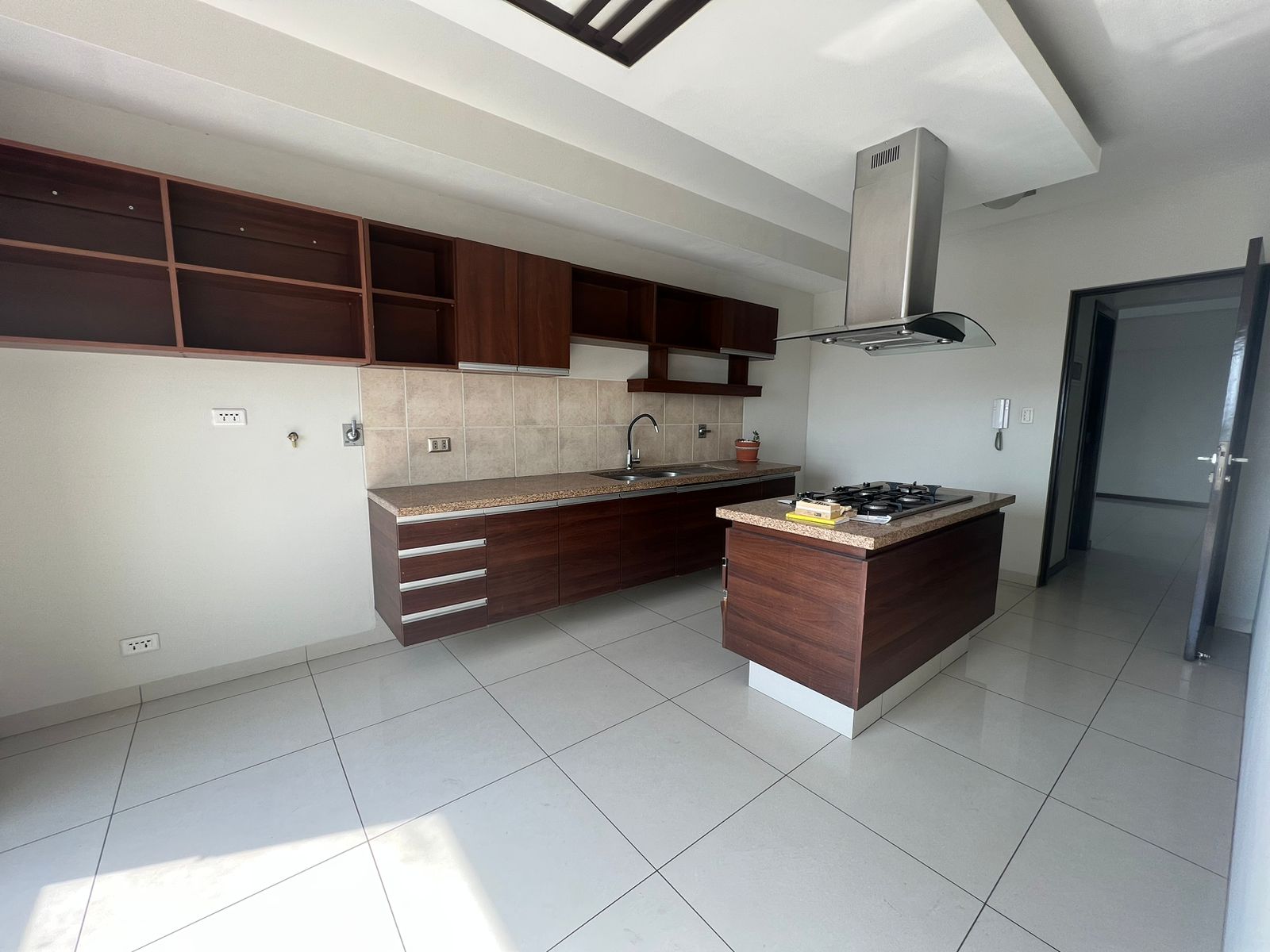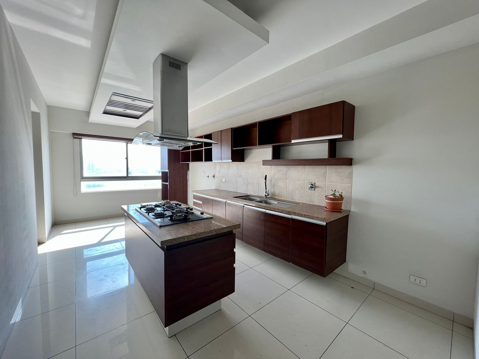 ▪️Cocina encimera con muebles inferior y superior (isla central con extractor).