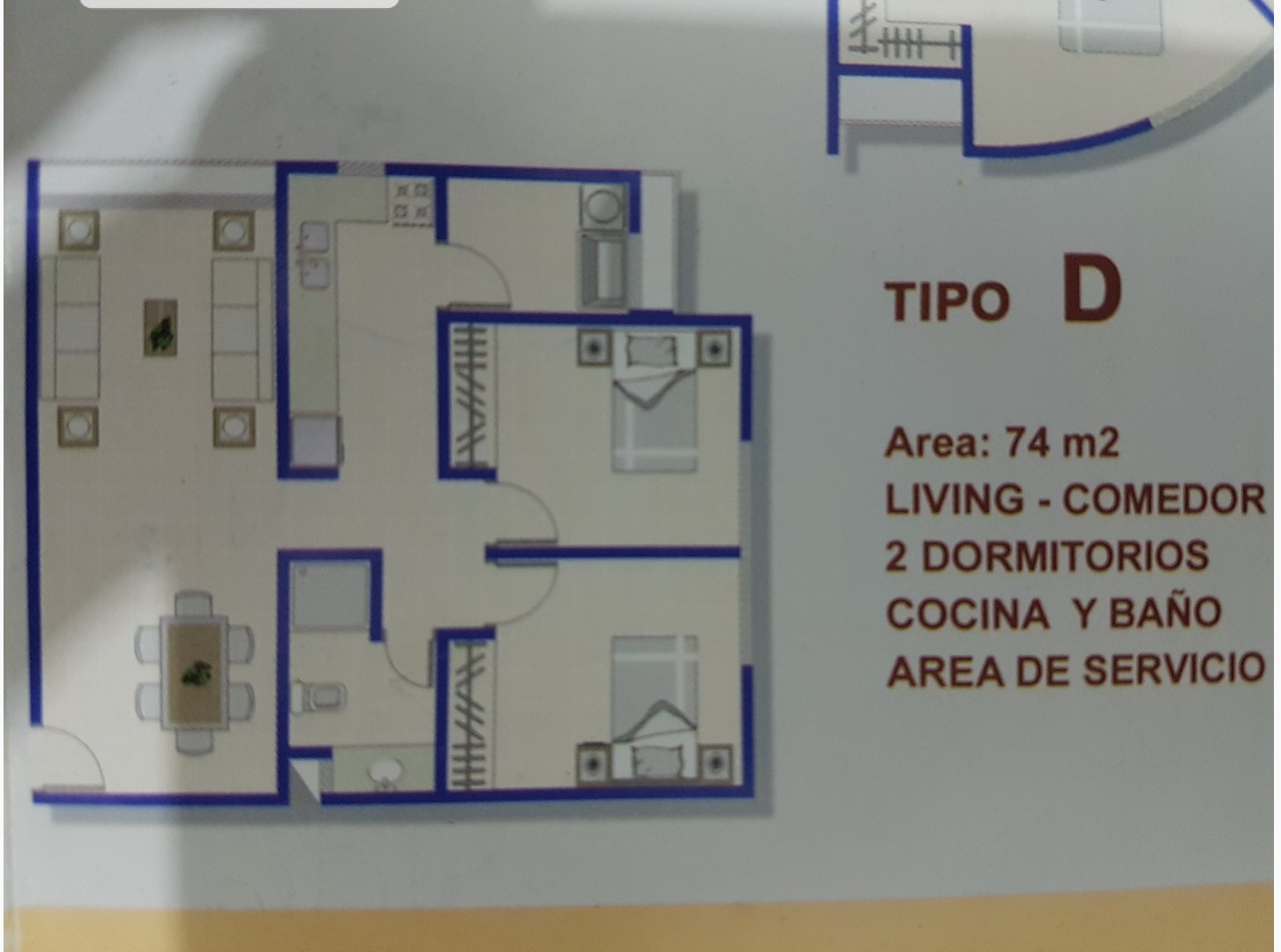 El Departamento consta Living-Comedor -cocina -área de servicio-                                                                                                                                                                        2 habitaciones- 1 baño -Roperos -cortinas -box de baño-Pisos de porcelanato Muebles empotrados de cocina –calefón