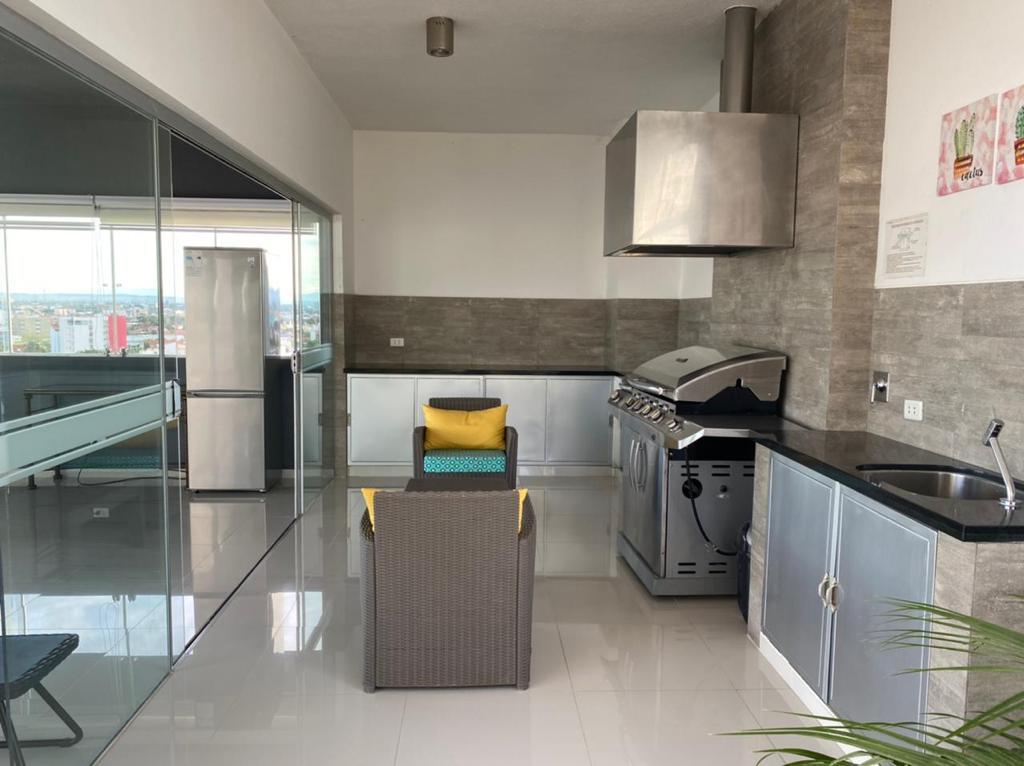 - Cocina equipada con cajonería (arriba y abajo), cocina encimera y horno extractor