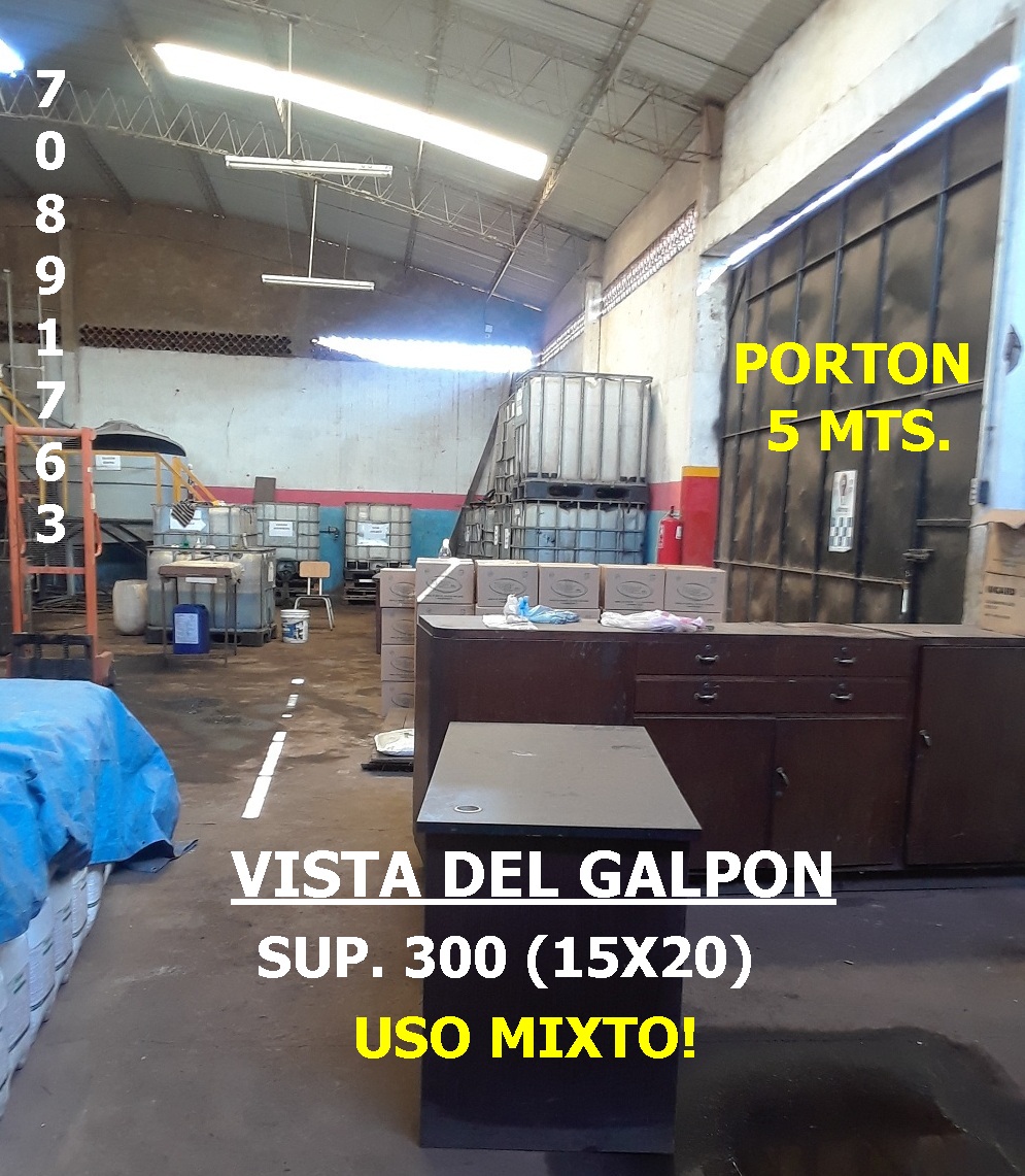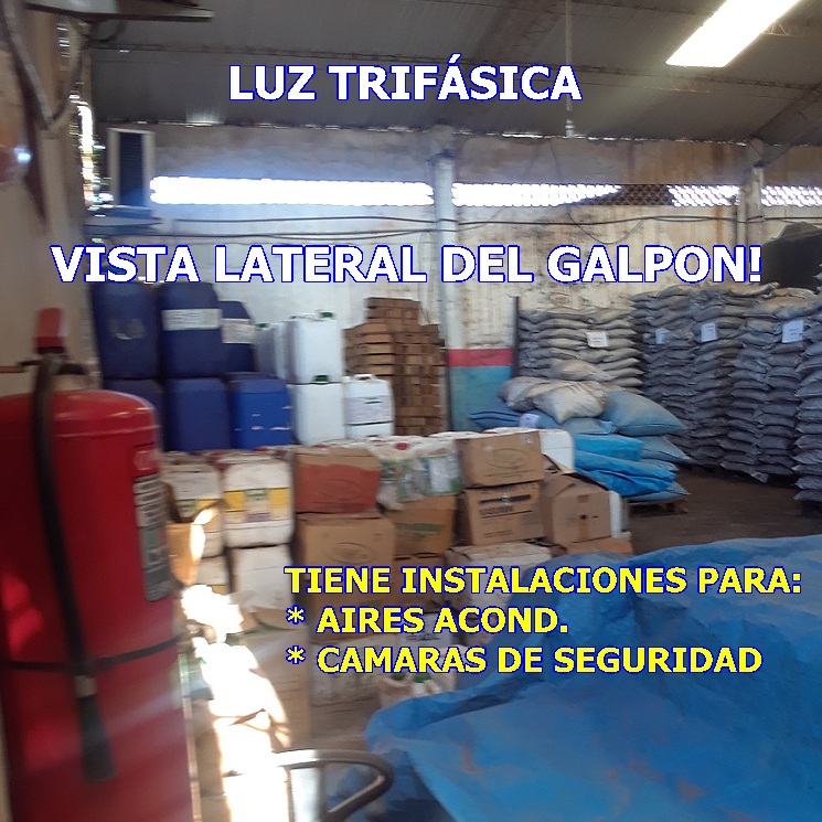 El Galpon es para Uso Mixto, luz trifásica, consta de 1 oficina de 45 Mts. y su baño, el Galpon tiene piso de carga, un portón 5 Mts corredizo y todas las instalaciones para aire acond. y cámaras de seguridad.