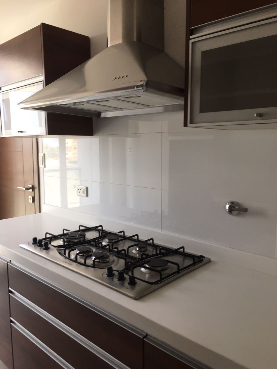 •  Cocina equipada con mobiliario, cocina mesonera, extractor de aire