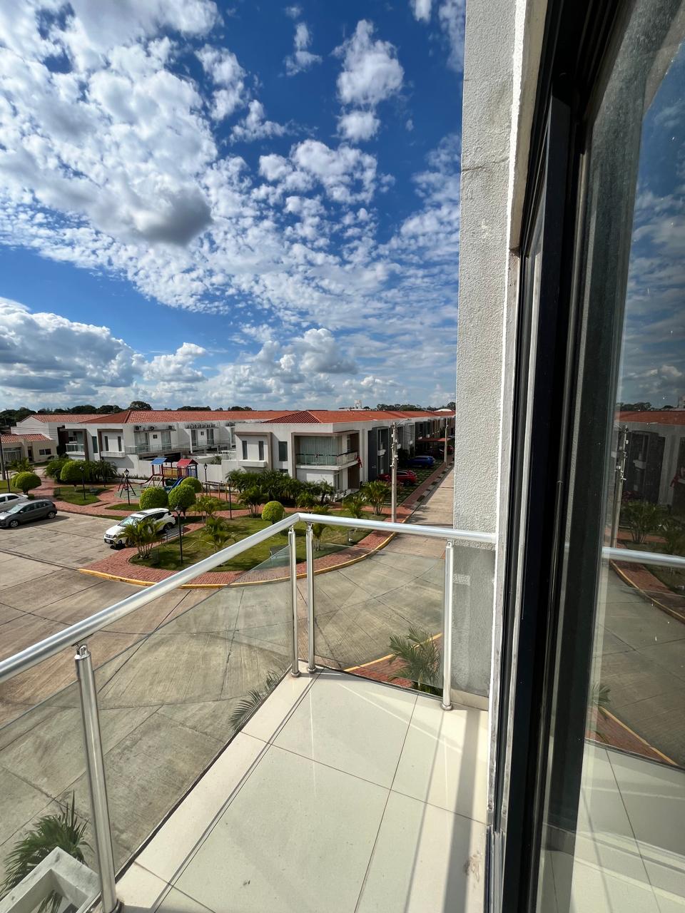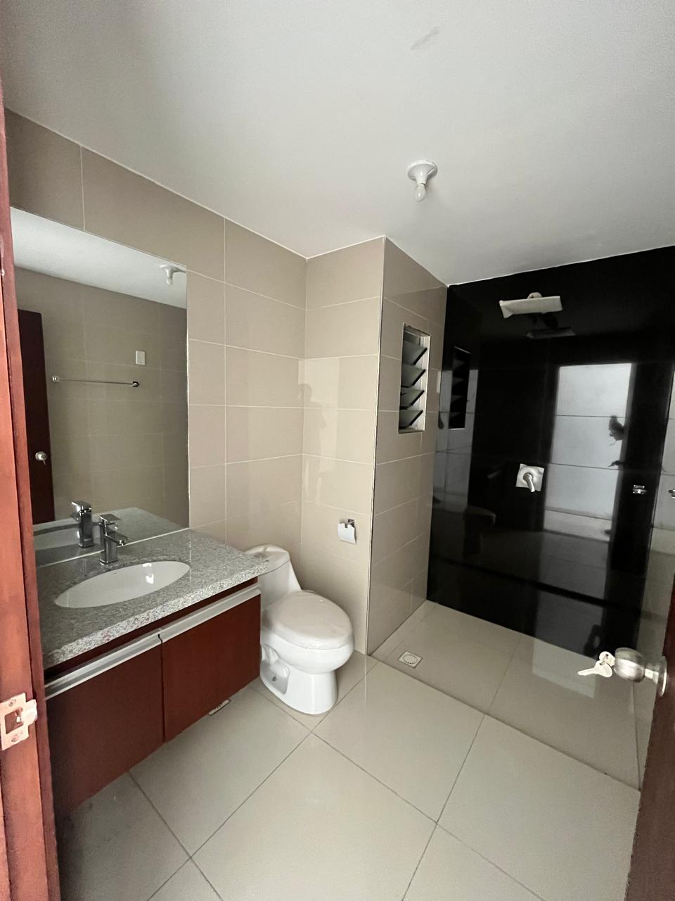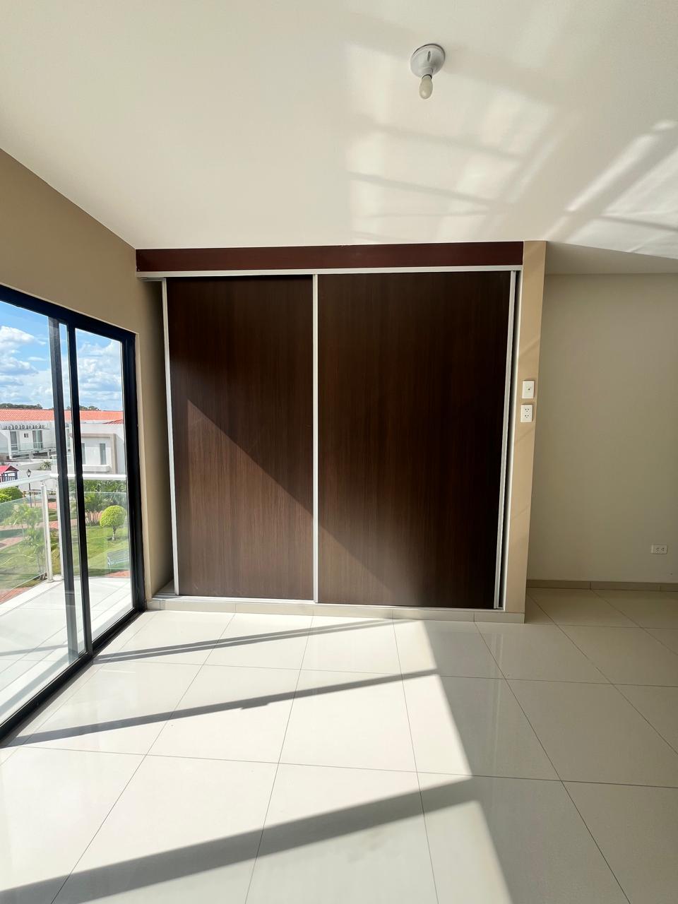 El departamento se entrega con mesones y cajoneria bajo mesón de cocina y baños, puerta de closet y accesorios de baño.