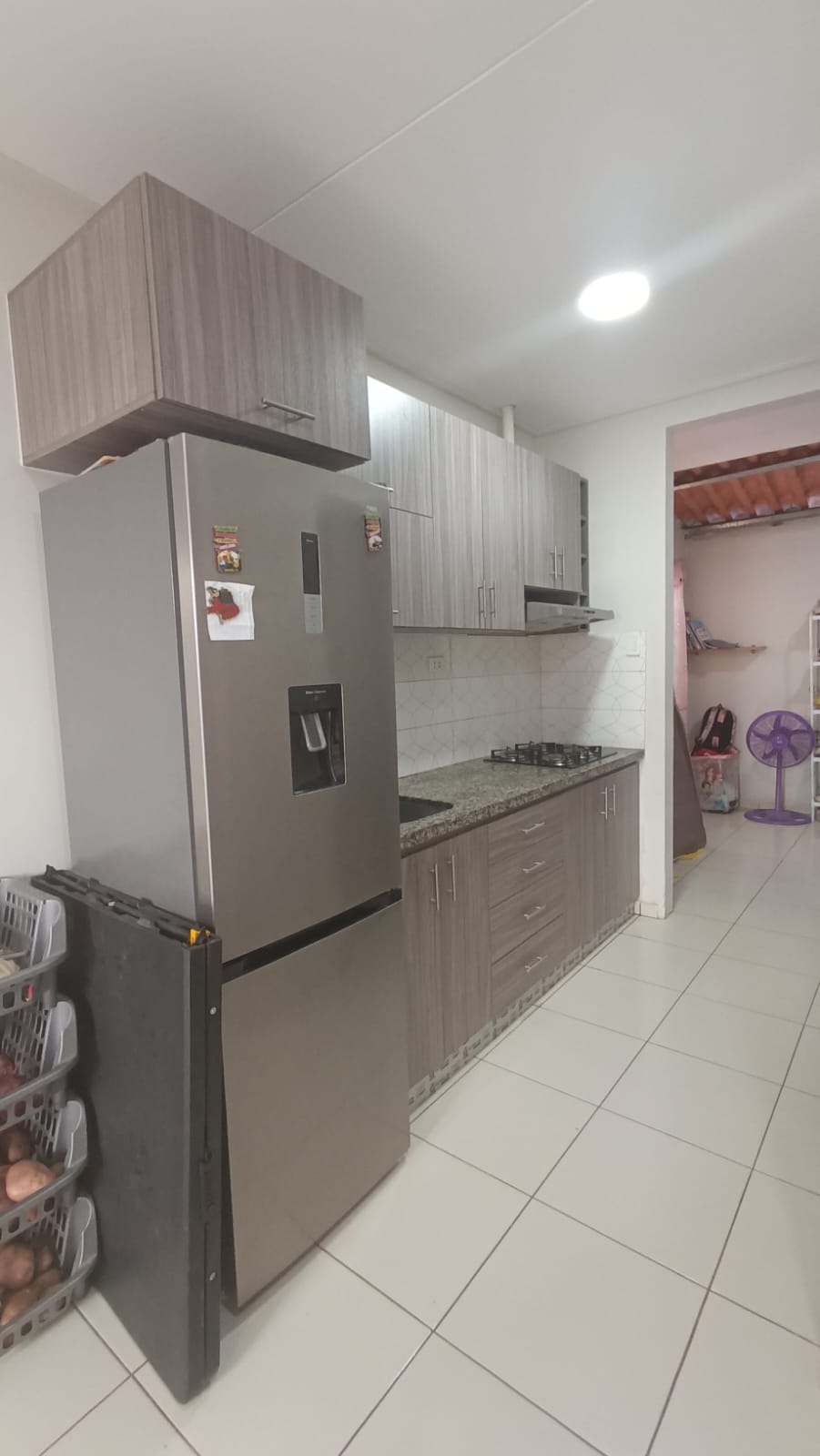 Cocina con cajonería alta y baja, encimera y extractor
