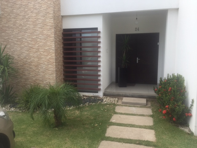 Casa en Urbanización Cerrada de solo 46 viviendas. La urbanización cuenta con Seguridad las 24 hrs, cámaras de vigilancia, conexión de gas domiciliario, 2 churrasqueras y 2 parques. Direccion: Carretera al Norte, km 8, entrando 400 Mts por La Chonta. La casa consta de 3 dormitorios (1 en suite, vestidor y baño con box de vidrio), roperos empotrados, cortinas modernas. 1 Baño de visitas con mesón de granito, muebles y box de vidrio. Sala de TV/estar/Juegos con jardín interno y cortina.